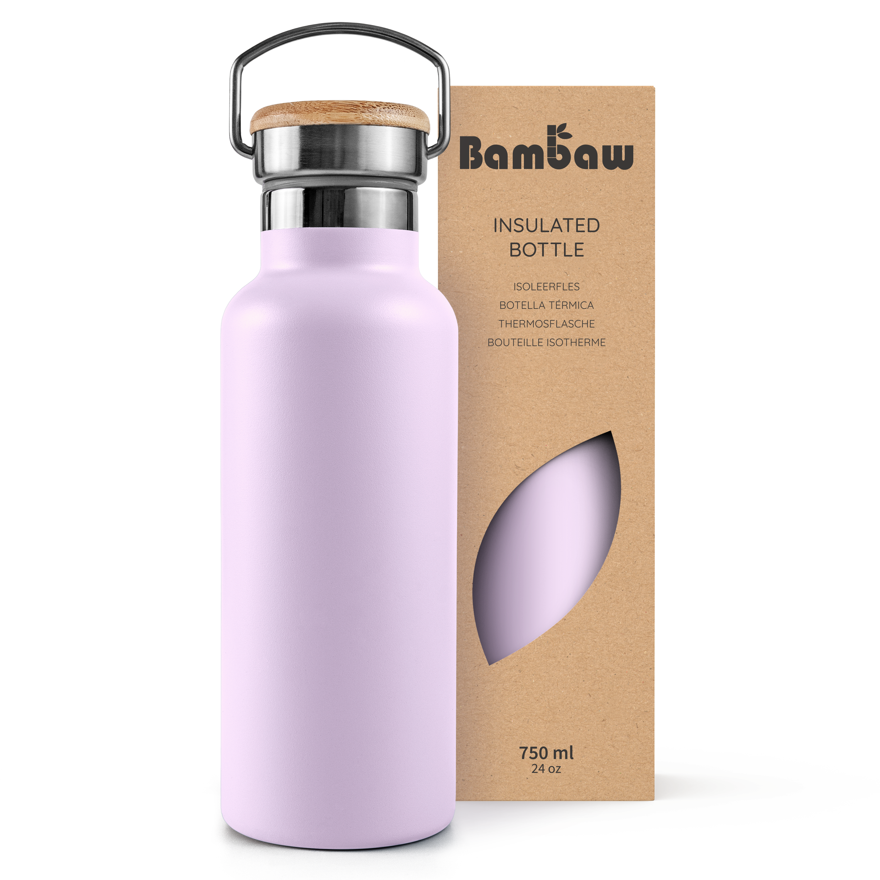 Butelka termiczna ze stali nierdzewnej z bambusową zakrętką, podwójnie izolowana, Lavender Haze, ZERO WASTE, 750 ml - Bambaw