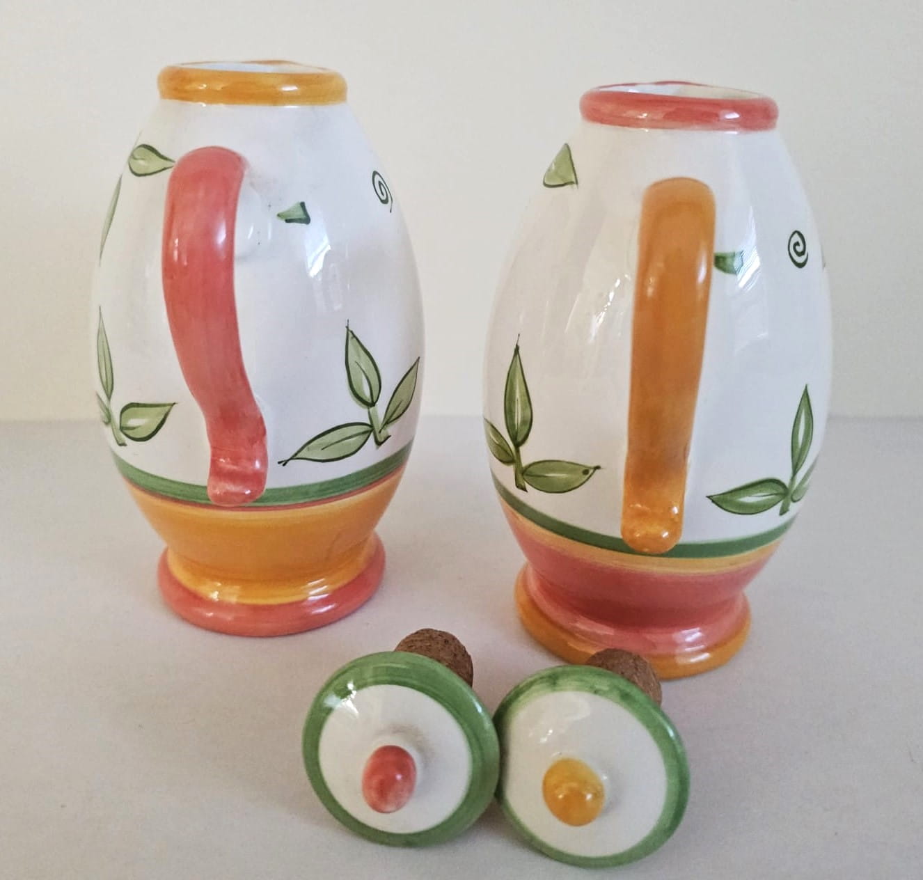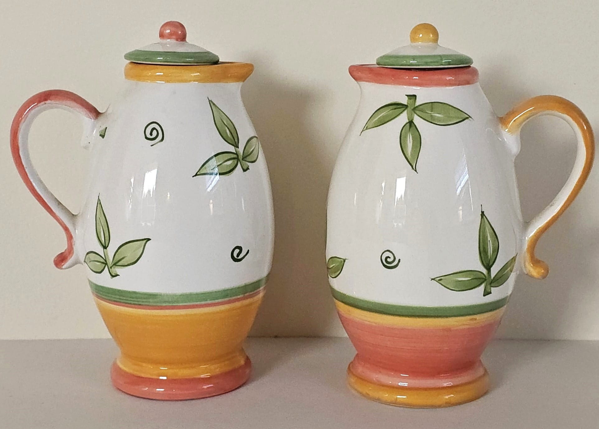 Dzbanuszki ceramiczne "Wiosenne listki" - 2 sztuki - Retro
