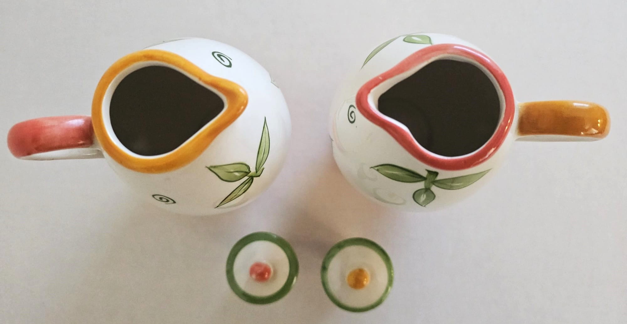 Dzbanuszki ceramiczne "Wiosenne listki" - 2 szt. - Retro