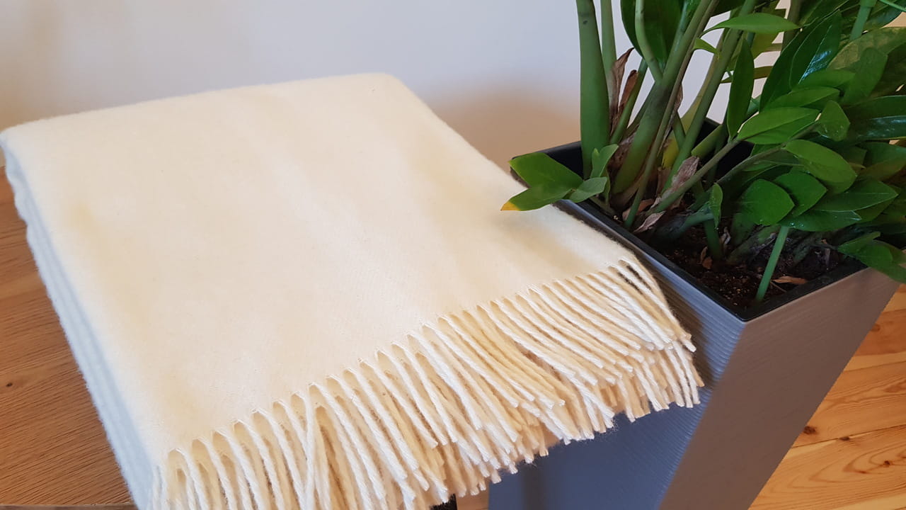 Koc z wełny Nowozelandzkiej - ecru, jednobarwny
