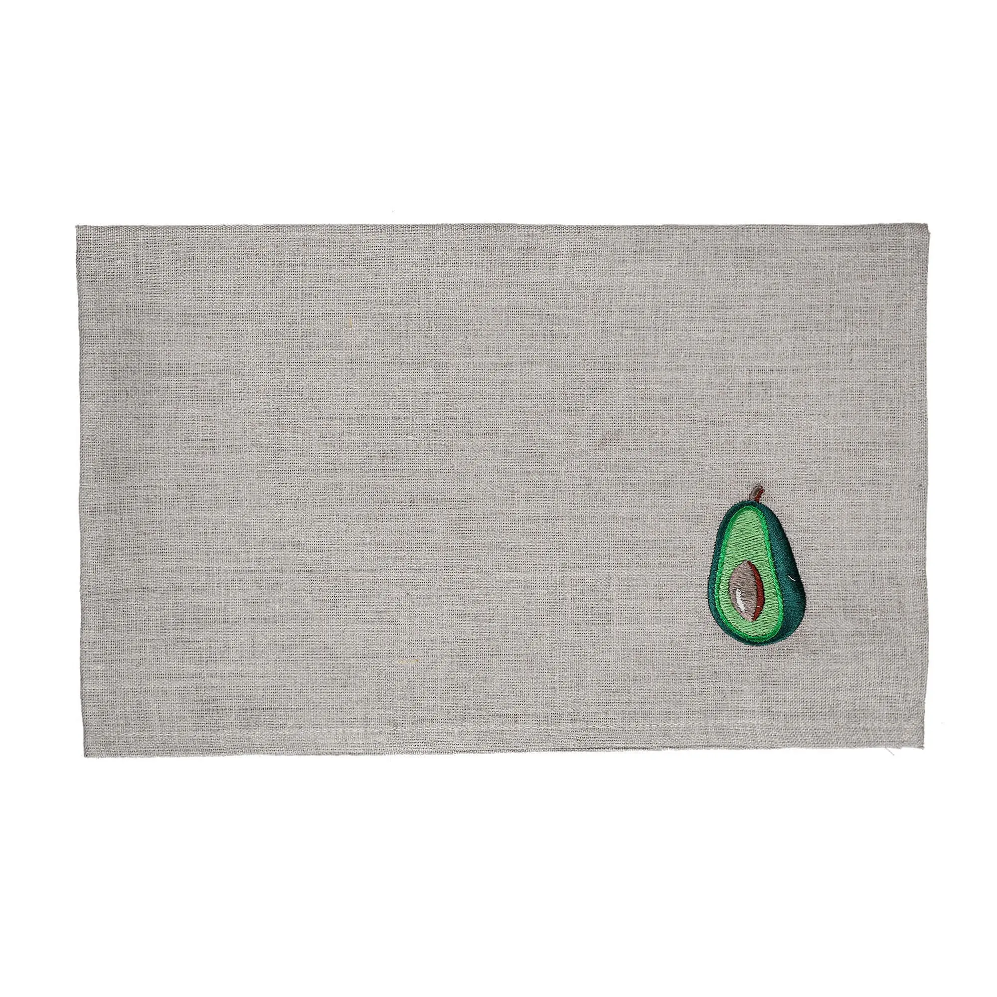 Lniana ścierka kuchenna kolor naturalny z haftem 45x75 cm - Awokado