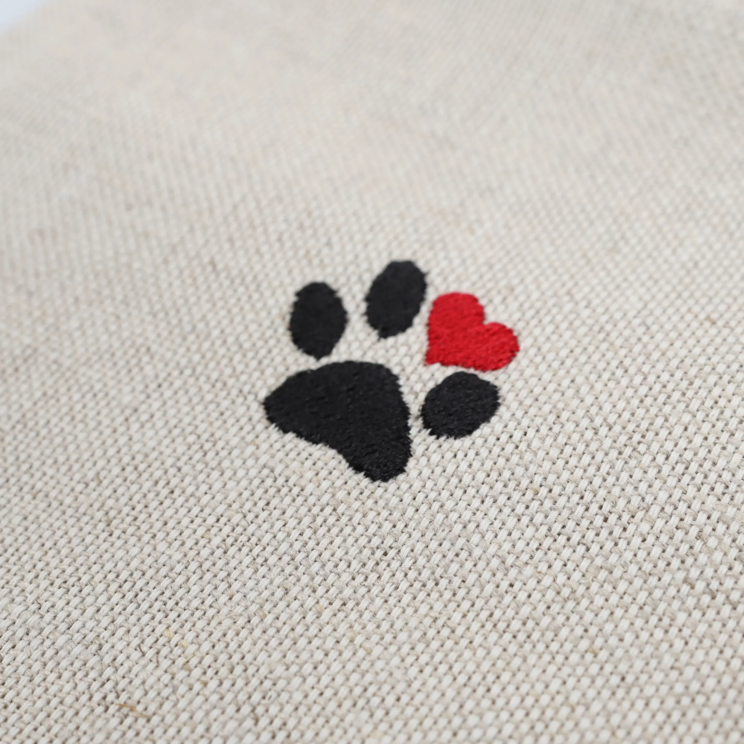 Lniany woreczek dekoracyjny z haftem – Łapka 15×20 cm