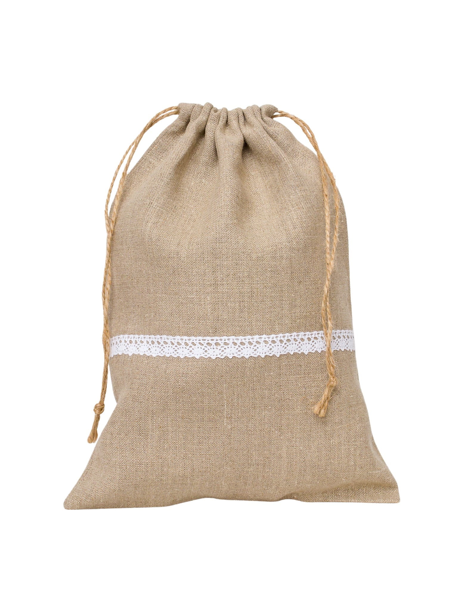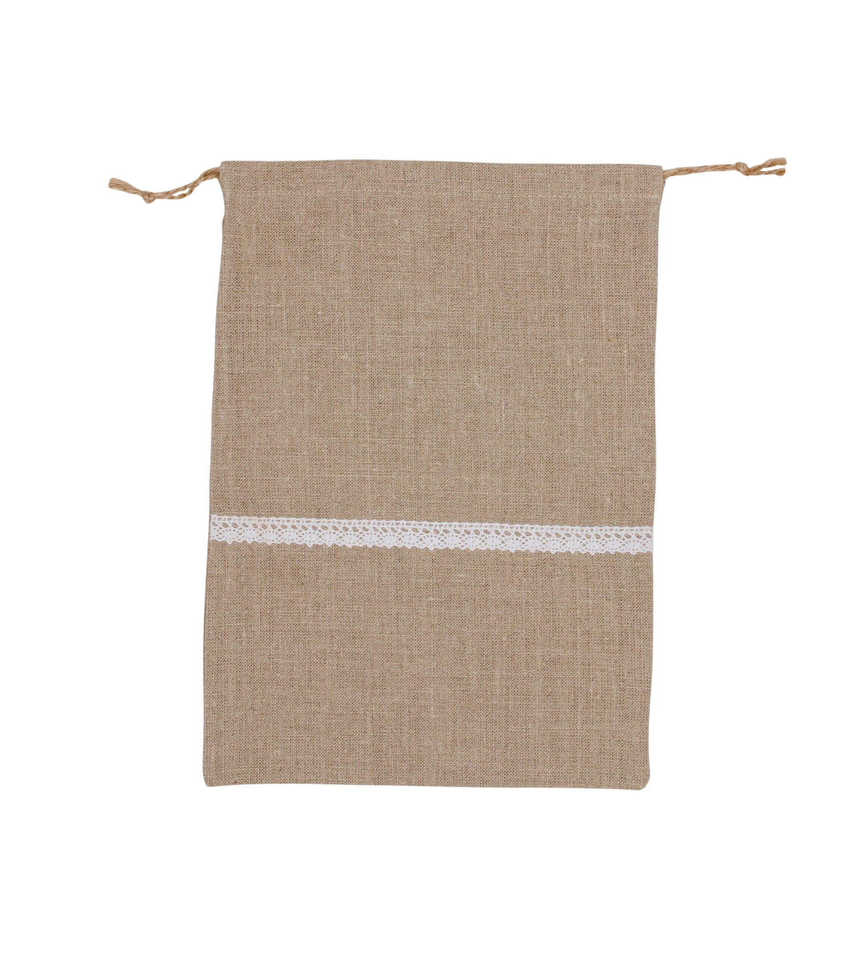 Lniany worek dekoracyjny – z koronką – 26 x 36 cm