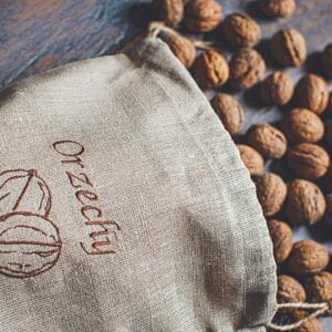 Praktyczny, ekologiczny i niezwykle wytrzymały lniany worek na orzechy, który stanie się nieodzownym elementem Twojej spiżarni. Wykonany z dbałością o każdy szczegół w naszej lokalnej pracowni, stanowi idealne połączenie tradycyjnego rzemiosła z ideą zero waste. Zastosowanie wysokiej jakości polskiej tkaniny lnianej zapewnia optymalną cyrkulację powietrza, co jest kluczowe dla zachowania świeżości i chrupkości przechowywanych orzechów. To produkt typu handmade, stworzony przez prawdziwych rzemieślników, co gwarantuje jego trwałość i unikalny charakter. Naturalny odcień beżu oraz starannie wykonany haft komputerowy nadają mu rustykalnego uroku, który pięknie zaprezentuje się w każdej kuchni, eliminując konieczność używania plastikowych opakowań.