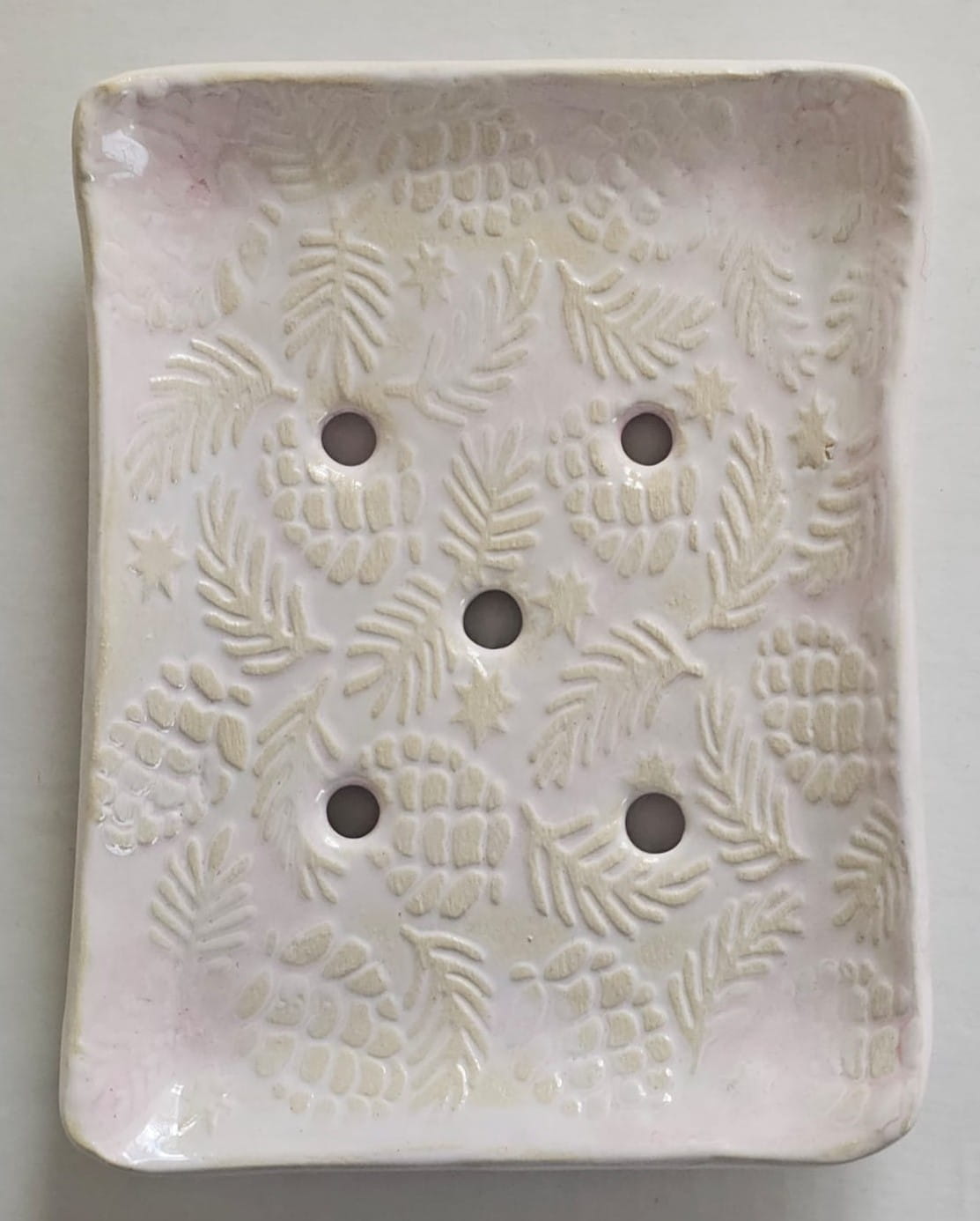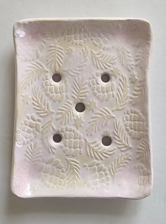 Piękna mydelniczka "Różowa poświata", wykonana ręcznie z gliny.