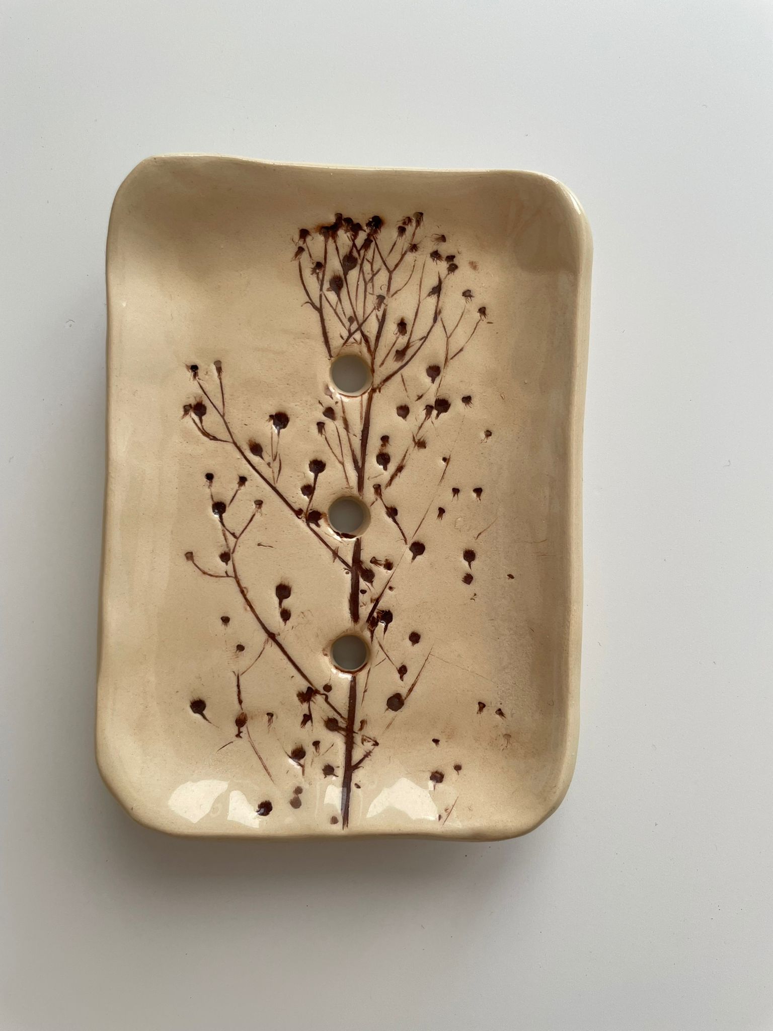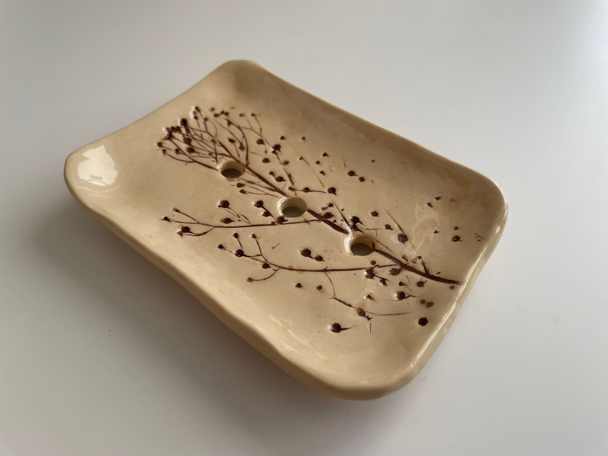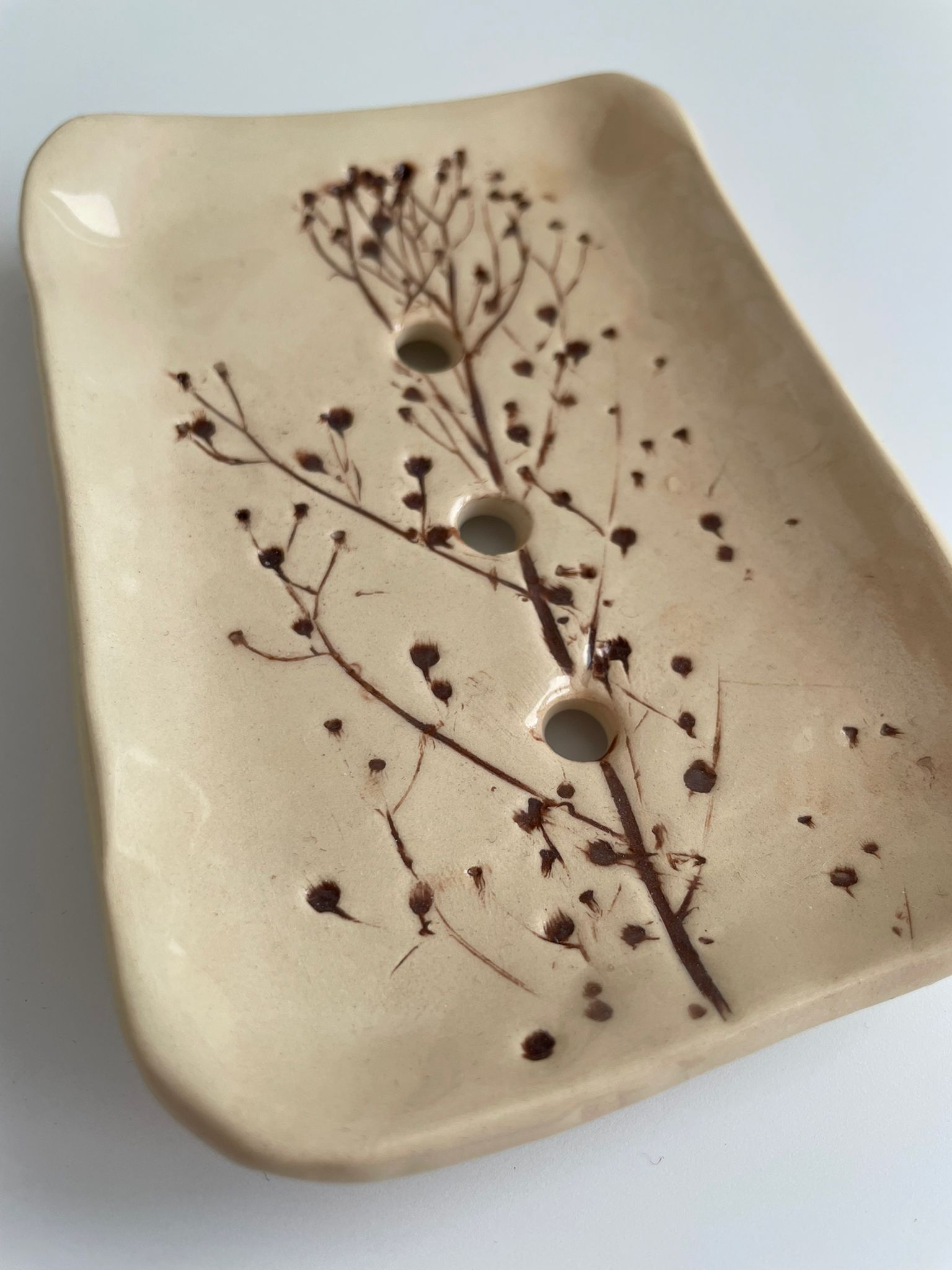 Piękna mydelniczka "Skrzyp błotny", wykonana ręcznie z gliny.