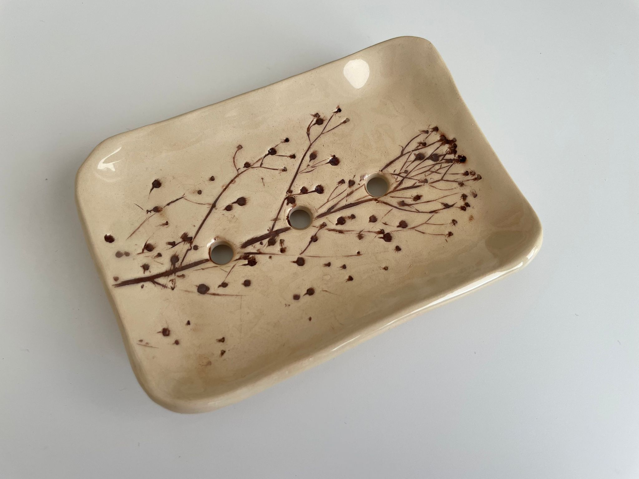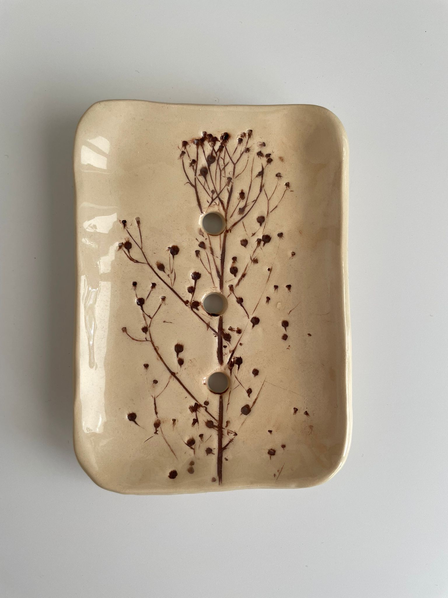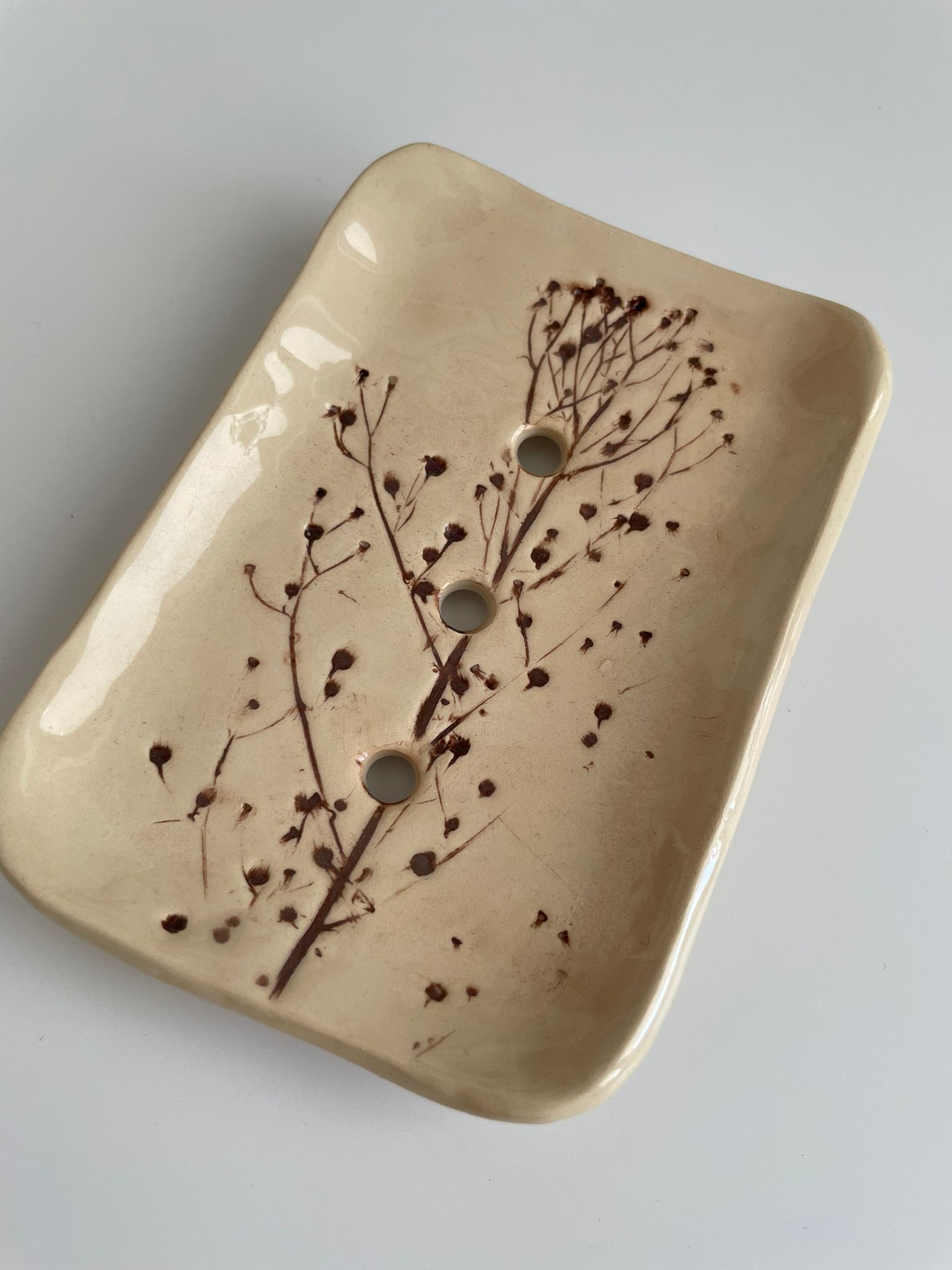 Piękna mydelniczka "Skrzyp błotny", wykonana ręcznie z gliny.