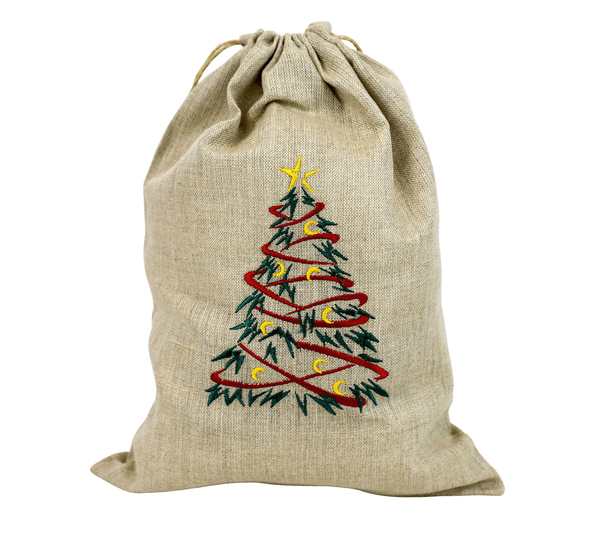 Naturalny lniany worek świąteczny na prezent z choinką
