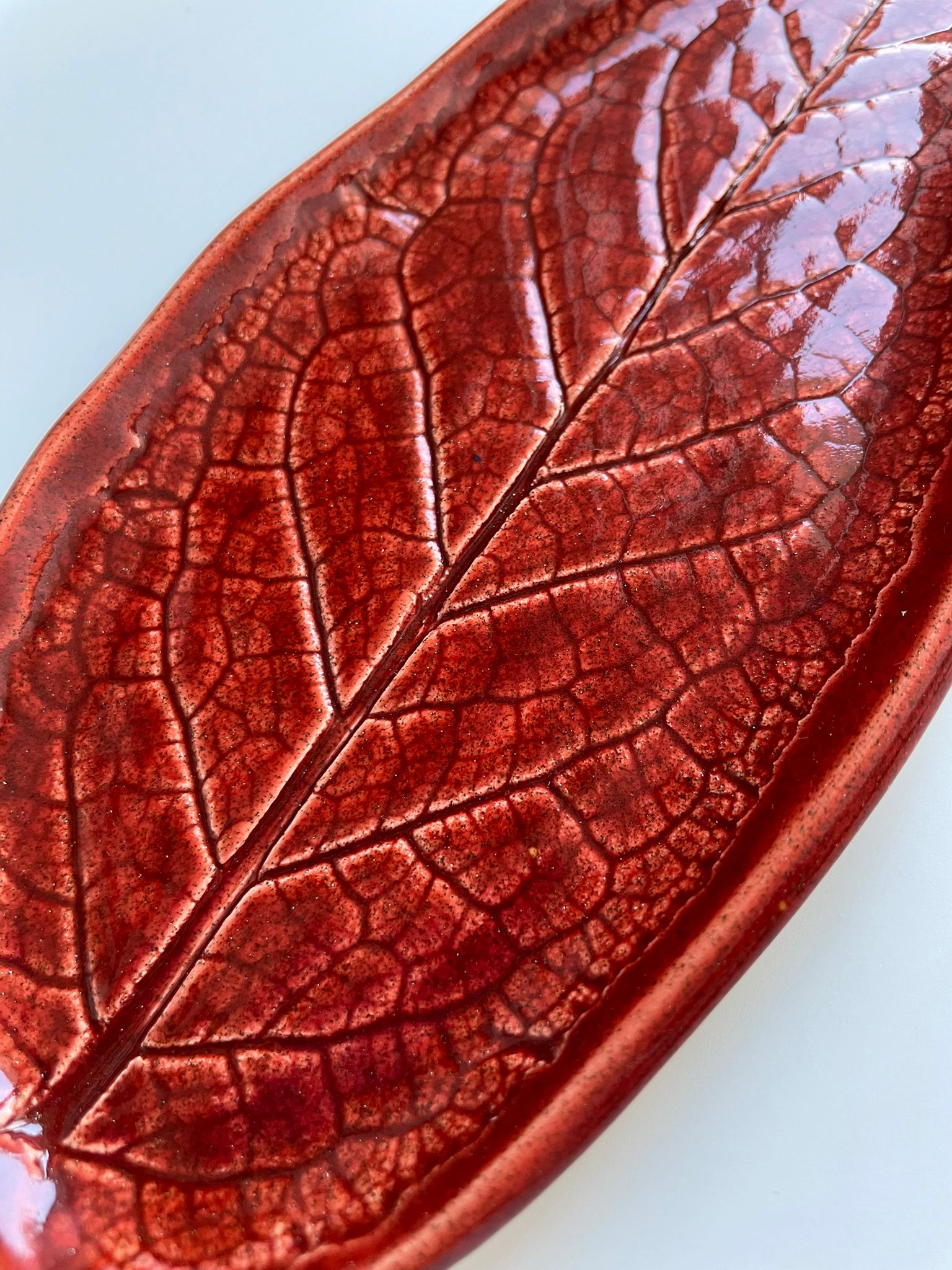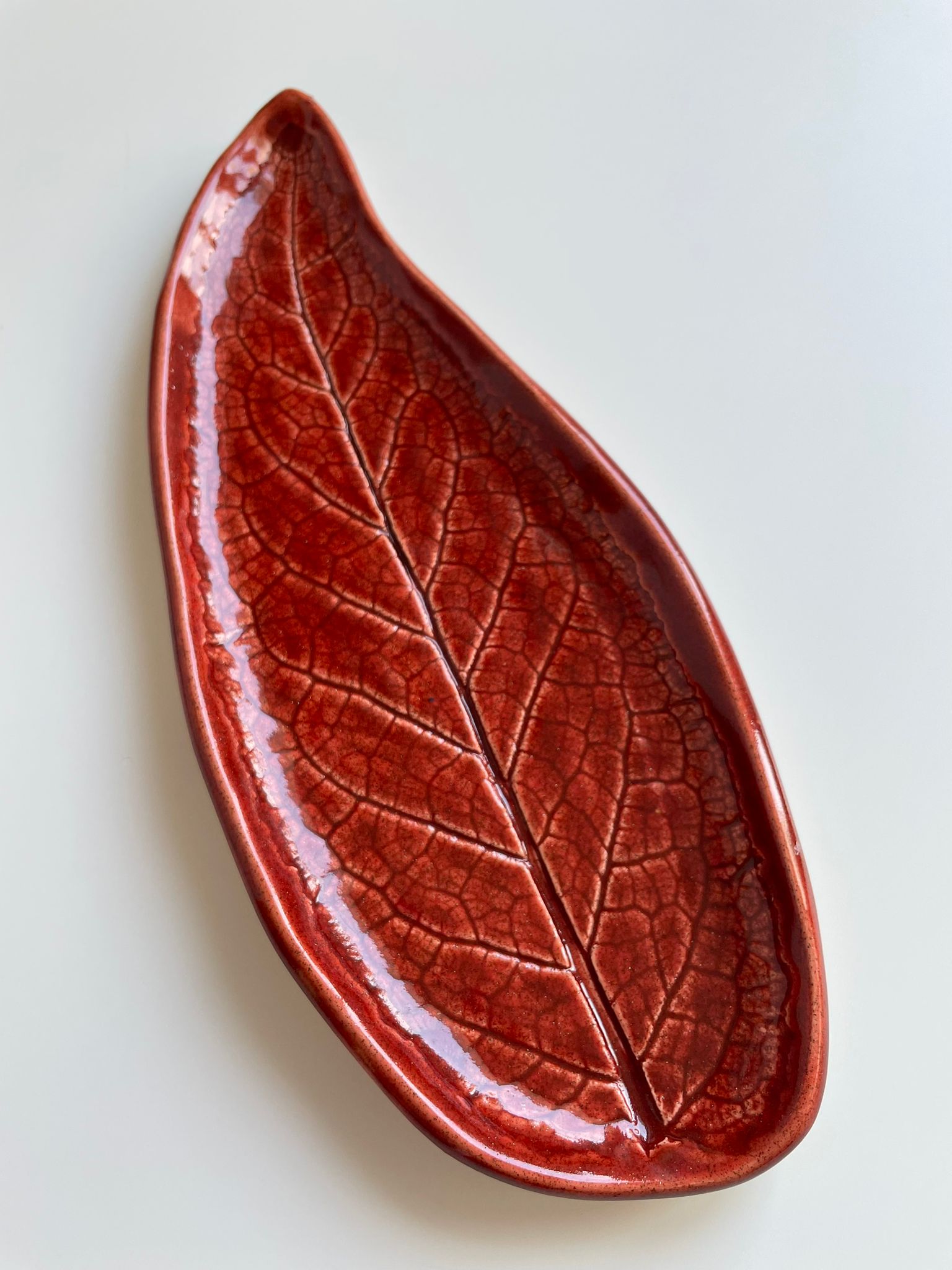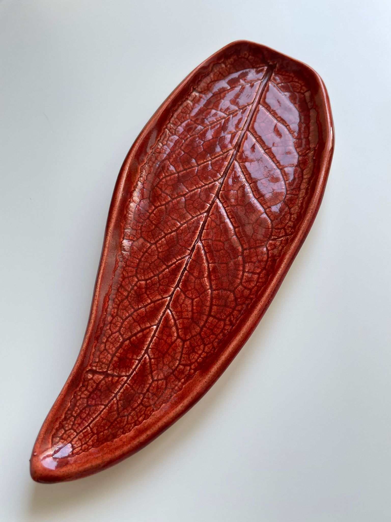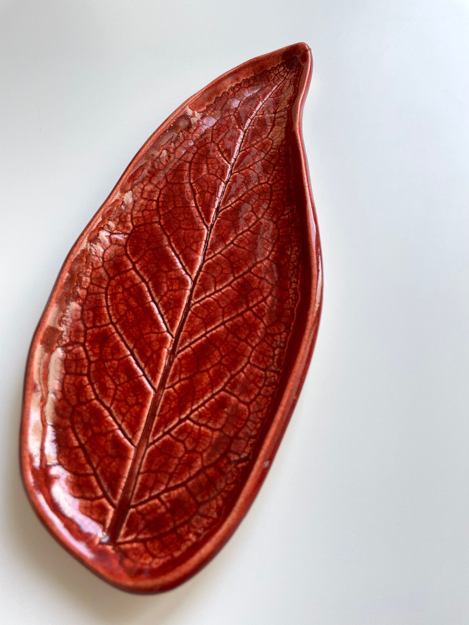 Podstawka ceramiczna "Ceglany listek" - ręcznie wykonana