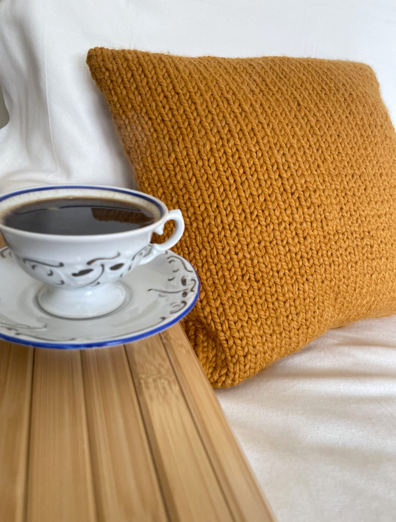 Poszewka na poduszkę wykonana jest na drutach przez Rękodzielnika, wprost z Wytwórni Dobrostanu :)