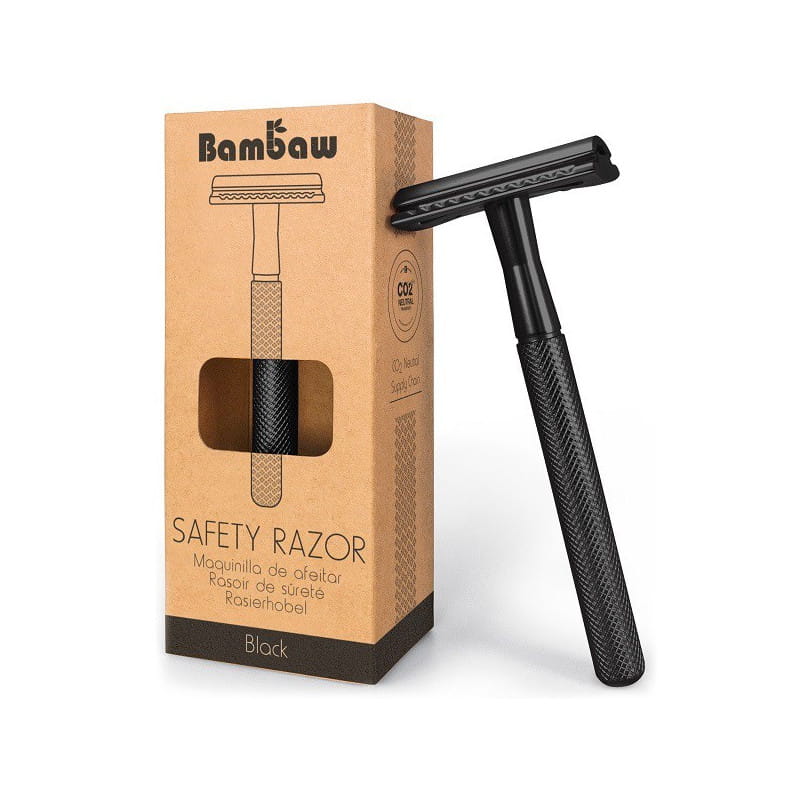 Wielorazowa maszynka do golenia na żyletki, Czarna - Bambaw