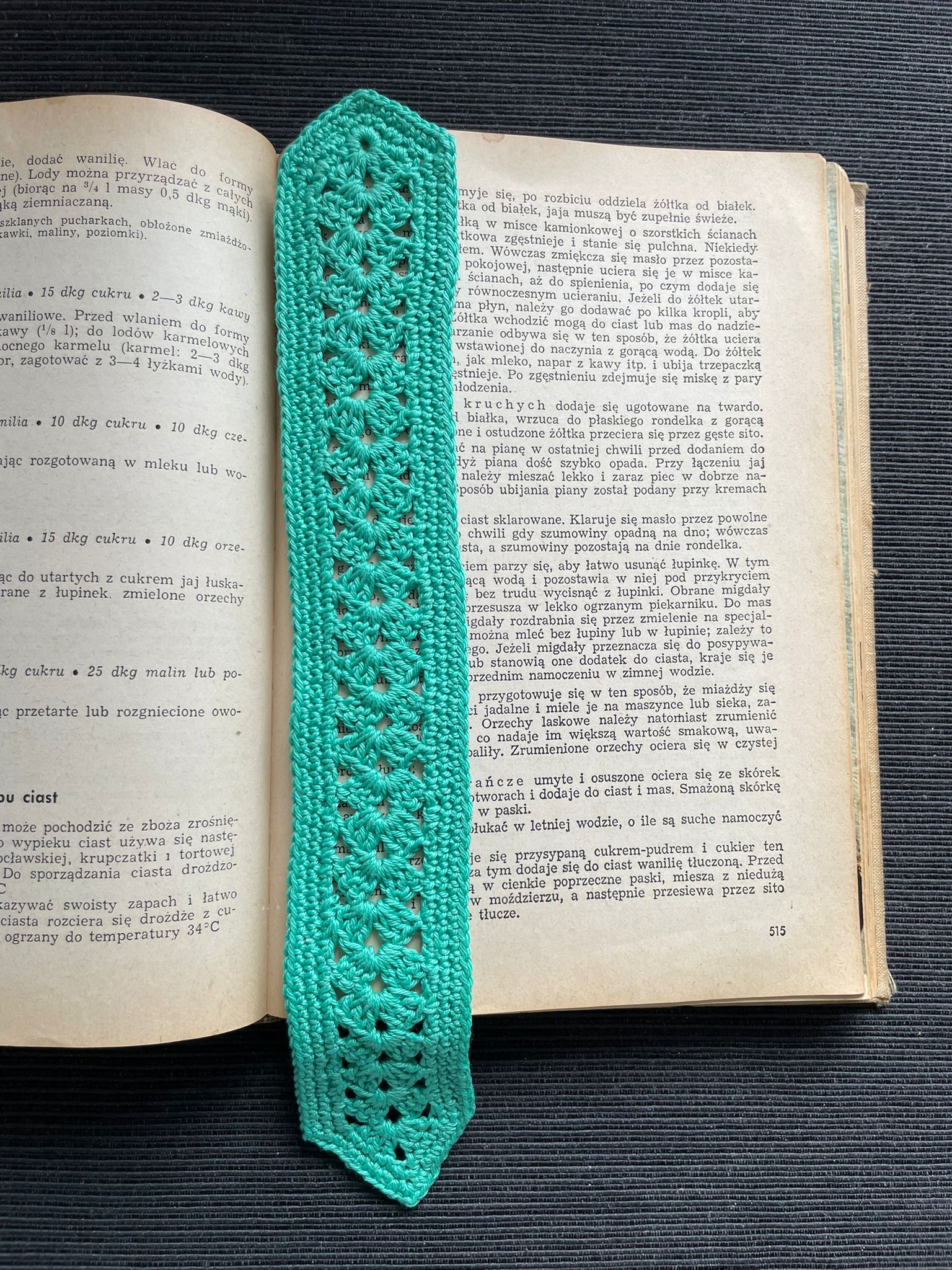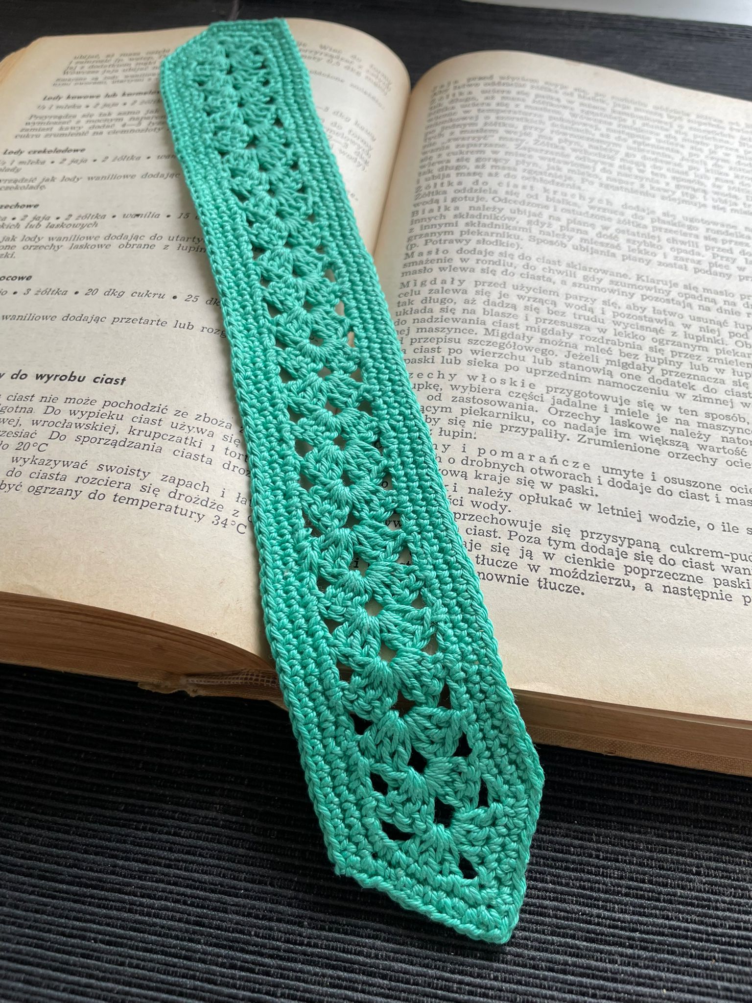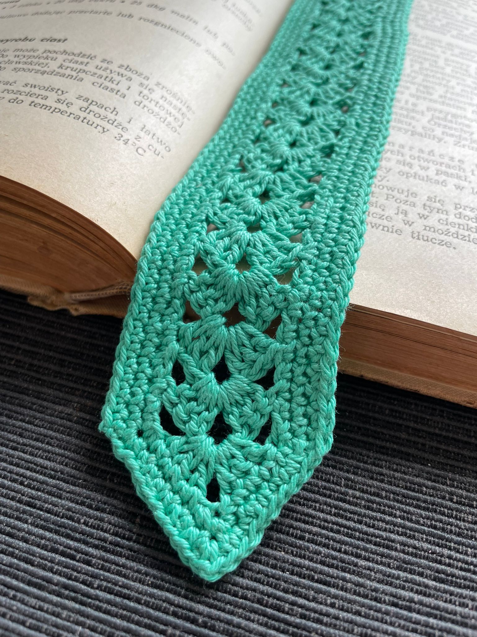 Zakładka do książki "Zielony ornament" - ręcznie wykonana na szydełku